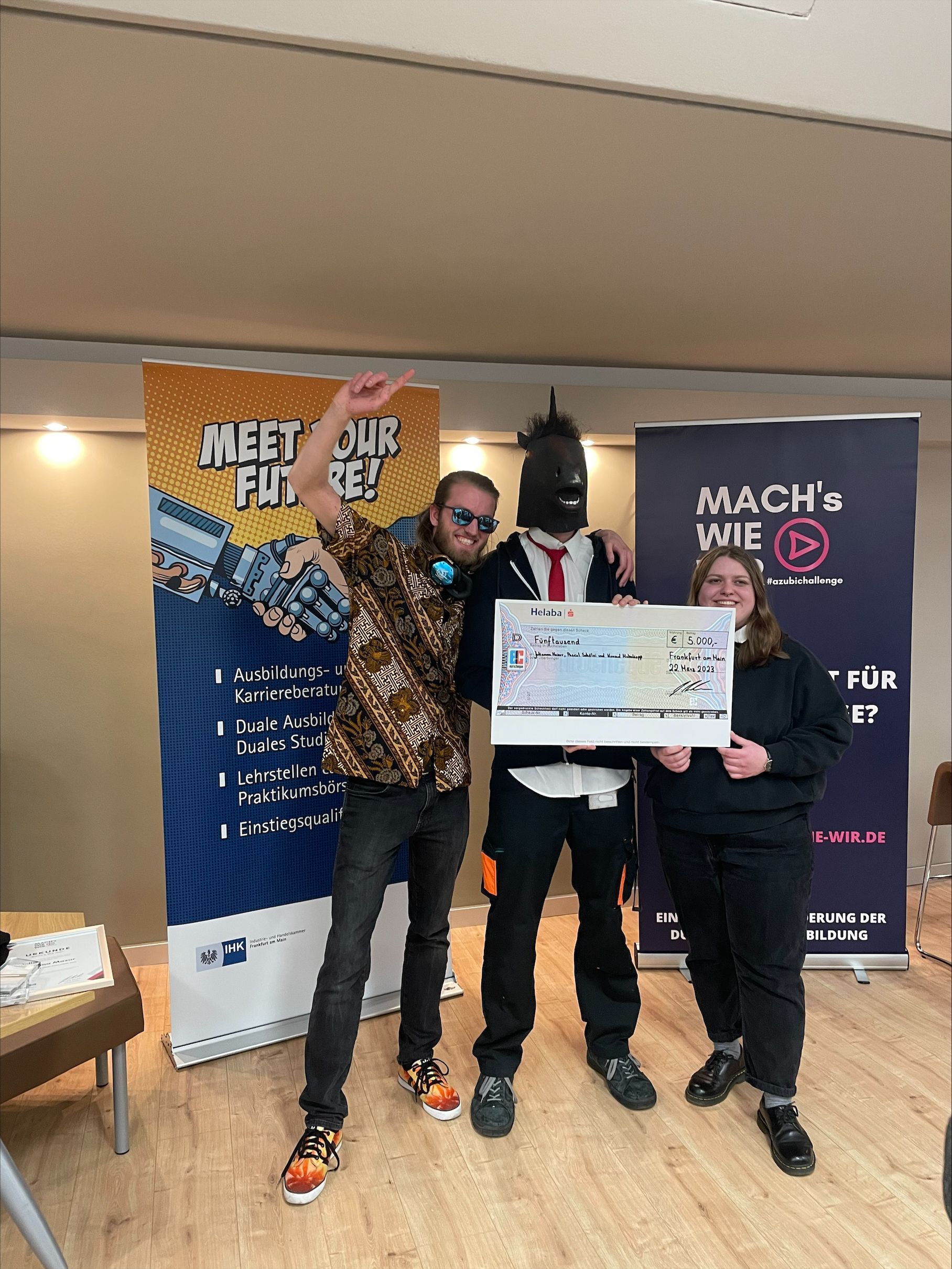 Wir freuen uns sehr mitteilen zu können, dass die drei Auszubildenden aus Frankfurt, Julianna Mazur, Konrad Mahnkopp und Pascal Schölei, den ersten Platz der zweiten bundesweiten Azubi-Challenge von „Mach’s wie wir!“ gewonnen haben.